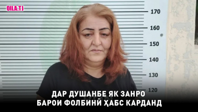 Панҷшанбеева Гулихандон, сокини 49-солаи шаҳри Душанбе барои фолбинӣ аз ҷониби кормандони ШВКД-1 дар ноҳияи Сино дастгир шудааст. Номбурда муддати тӯлонӣ ба ин амали нангин машғул буда, аз ин ҳисоб манфиати молиявӣ ба даст меовардааст.