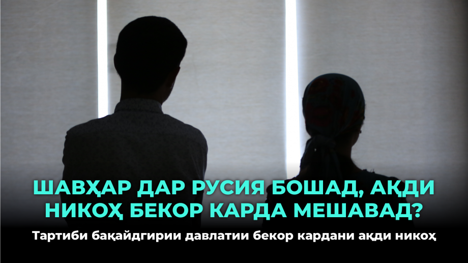 Тавре ҳуқуқшинос Ҷалолиддини Ҳақназар зимни суҳбат бо мо гуфт: “Тартиби бекор кардани ақди никоҳ дар моддаҳои 19-23-и Кодекси оилаи Ҷумҳурии Тоҷикистон нишон дода шудааст. Зану шавҳар фарзандони ноболиғи муштарак надошта бошанд ва байнашон баҳси молу мулкӣ мавҷуд набошад, метавонанд барои бекор кардани ақди никоҳашон ба мақомоти САҲШ-и ҷойи истиқоматашон муроҷиат намоянд. Дар сурати фарзандони ноболиғ доштани ҳамсарон ақди никоҳ бо роҳи судӣ бекор карда мешавад. Зан ё шавҳар ба бекор кардани ақди никоҳ розӣ набошад, ҳамсари дигар барои бекор кардани ақди никоҳ бояд ба суд муроҷиат намояд. Яке аз ҳамсарон дар Русия ё кишвари дигар қарор дошта бошад, ба шахси боваринокаш ваколатнома медиҳад, то ки аз номи ӯ дар суд баромад кунад...”.