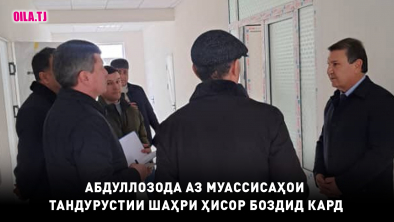 Имрӯз, 12-уми феврали соли равон вазири тандурустӣ ва ҳифзи иҷтимоии аҳолии Ҷумҳурии Тоҷикистон Ҷамолиддин Абдуллозода ба шаҳри Ҳисор сафари корӣ анҷом дода, бо фаъолият ва корҳои ободониву созандагӣ дар муассисаҳои тандурустӣ шинос гашт.