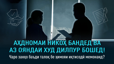 Барои он ки ҳуқуқҳои иқтисодии ҳамсарон, махсусан занон поймол нагардад, ақди никоҳро ҳатман дар мақомоти сабти асноди ҳолати шаҳрвандӣ ба қайд гирифта, аҳдномаи никоҳ, яъне “Брачний контракт” бастан лозим аст.