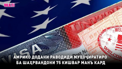 Иёлоти Муттаҳидаи Амрико ба расмият даровардани раводиди муҳоҷиратиро барои шаҳрвандони 75 кишвар, аз ҷумла Қазоқистон, Қирғизистон, Узбекистон, Русия ва Эрон манъ кард. Тоҷикистон дар ин рӯйхат нест.