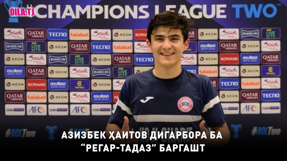 Ниммуҳофизатгари ҷавон ва узви дастаи мунтахаби Тоҷикистон Азизбек Ҳаитов дигарбора ба сафи “Регар-ТадАЗ” баргаштааст.