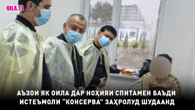 Аъзои як оила дар ноҳияи Спитамени вилояти Суғд баъди истеъмоли хӯриши хонагӣ ё “консерва” заҳролуд шудаанд. Ҳодиса 14-уми январ рух додааст.