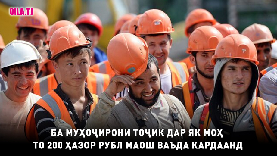 “Намояндагии Вазорати меҳнат, муҳоҷират ва шуғли аҳолии Ҷумҳурии Тоҷикистон дар Федератсияи Русия феҳристи нави ҷойҳои кории холиро, ки корфармоёни рус барои шаҳрвандони Тоҷикистон пешниҳод кардаанд, нашр намудааст. Музди меҳнат дар таклифҳои нави аз ҷониби корфармоёни рус пешниҳодшуда хеле боло бурда шуда, то ба 200 ҳазор рубл дар як моҳ мерасад”,- навиштааст манбаъ.