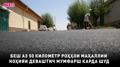 Дар ноҳияи Деваштич ба истиқболи 35-солагии Истиқлоли давлатии Ҷумҳурии Тоҷикистон беш аз 50 километр роҳҳои маҳаллӣ ҳамвор ва мумфарш гардонида шуданд.