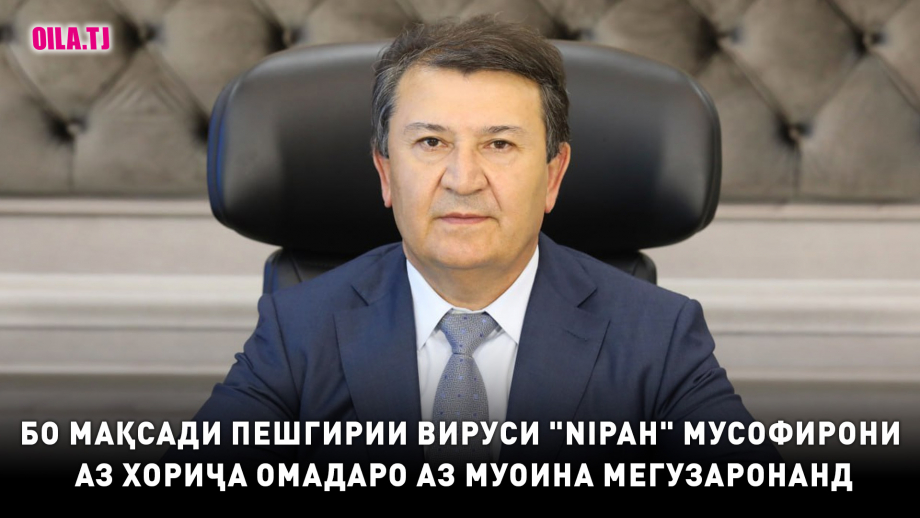 Бо мақсади пешгирии вируси "Nipah" мусофирони аз хориҷа омадаро аз муоина мегузаронанд . Дар ин бора вазири тандурустӣ ва ҳифзи иҷтимоии Тоҷикистон Ҷамолиддин Абдуллозода имрӯз зимни нишасти матбуотӣ хабар дода гуфт, барои ошкор кардани вируси "Nipah" ба кишвар аз Русия озмоишҳо ворид карда мешаванд.