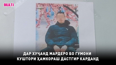 Кормандони милитсия дар вилояти Суғд мардеро боздошт намудаанд, ки дар куштори ҳамкораш гумонбар дониста мешавад.
