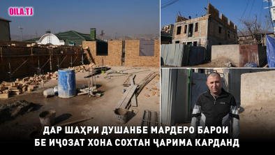 Дар шаҳри Душанбе нисбати як мард барои бидуни иҷозат бунёд намудани манзили истиқоматӣ парвандаи маъмурӣ тартиб додаанд. Дар ин бора Раёсати ВКД дар шаҳри Душанбе хабар додааст.