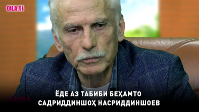 Дар фарҷоми соли 2025, рӯзи 25-уми декабр қалби яке аз табибони маъруф, вориси арзандаи Ибни Сино, яке аз беҳтарин донандагони тиби суннатии тоҷик, гиёҳшинос, доктор Садриддиншоҳ Насриддиншоев аз олам даргузашт. Ин табиби масеҳонафас солиёни зиёд ҳамрози шумо буд ва ба суолҳои шумо посух медоду барои дармони дардҳоятон роҳҳои табобатро мегуфт. Афсӯс, ки ин шахсияти нодиру меҳрубон дигар бо мо нест.