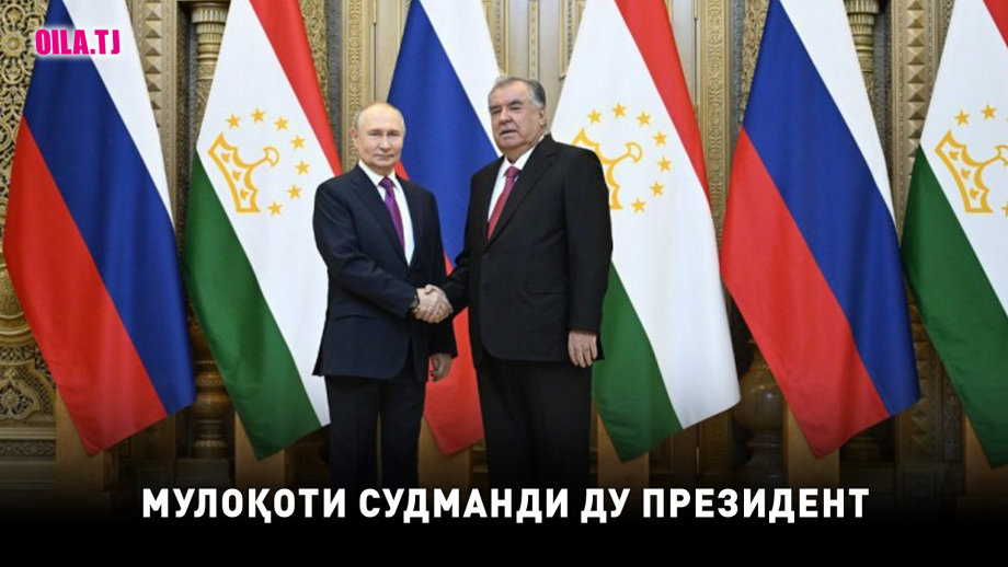 Имрӯз, 9-уми октябр дар шаҳри Душанбе музокироти сарони ду кишвар - Президенти Ҷумҳурии Тоҷикистон муҳтарам Эмомалӣ Раҳмон ва Президенти Федератсияи Русия Владимир Путин баргузор гашт.