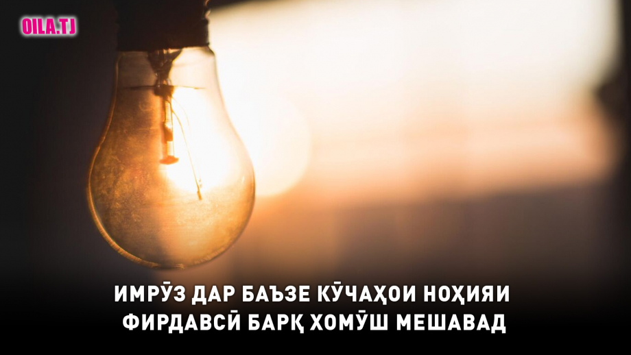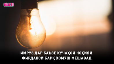 Қатъи муваққатии интиқоли барқ дар кӯчаҳои Қаҳҳоров, Мумзин, Рустам Амакӣ, Гравзавод ва Гулбутта-4-и ноҳияи Фирдавсӣ пешбинӣ гардидааст.