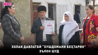 Давлатбӣ Каримова аз ҷамоати деҳоти Лоҳур хушдомани беҳтарин дониста шуда, сазовори ҷойи аввал гардид. Ғолиби озмун бо Диплом ва туҳфаҳои хотиравии Кумитаи кор бо занон ва оилаи назди Ҳукумати Ҷумҳурии Тоҷикистон қадрдонӣ карда шуд.