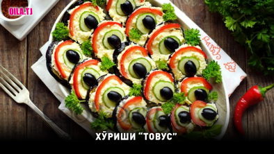 300 грамм боимҷон, 200 грамм бодиринг, 150 грамм помидор, 150 грамм панир, 2 дандона сирпиёз, 10 дона меваи зайтун, 20 грамм орд, 70 грамм майонез, намаку мурч.