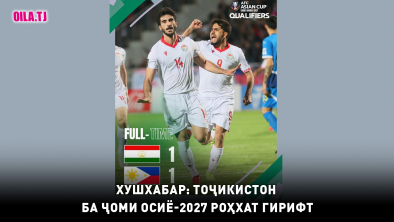 Дастаи мунтахаби футболи Тоҷикистон ба Ҷоми Осиё-2027 роҳхат гирифт.