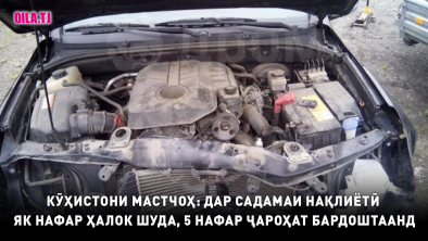 Дар ин ҳодиса як хонуми 40-сола, истиқоматкунандаи ҷамоати деҳоти Меҳнатободи ноҳияи Зафаробод ба ҳалокат расида, ронанда ва 4 ҳамсафари дигари ӯ бо ҷароҳатҳои гуногун дар бемористон бистарӣ шудаанд.