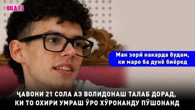 Ин ҷавони 21 сола мегӯяд, азбаски падару модараш ӯро бо ирода ва майлу хоҳиши худ ба дунё овардаанд, бояд то охири умраш хӯрондану пӯшонданашро бар дӯш бигиранд.