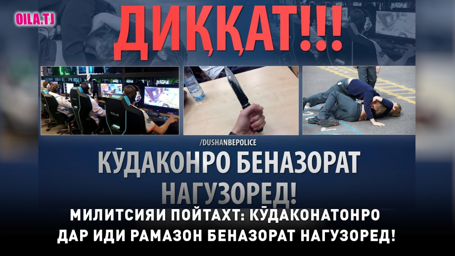 Бо мақсади пешгирӣ намудани чунин ҳодисаҳои нохуш Раёсати корҳои дохилӣ дар шаҳри Душанбе бо нашри як муроҷиатнома аз падару модарон хоҳиш кардааст, ки дар Иди Фитр фарзандонашонро беназорат нагузоранд ва ба беҳудагардӣ, оворагардӣ ва шабгардии кӯдакону наврасон роҳ надиҳанд.
