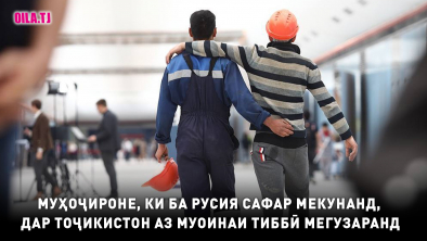 Тоҷикистон ва Русия созишномаеро ба имзо расониданд, ки мувофиқи он шаҳрвандони кишвари мо, ки ба Русия сафар доранд, аз ҷумла муҳоҷирони меҳнатии тоҷик минбаъд дар як муассисаи тиббии шаҳри Душанбе аз муоинаи ҳатмии тиббӣ мегузаранд.