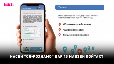 То охири моҳи январи соли 2026 дар 45 мавзеи таърихию сайёҳии шаҳри Душанбе “QR-роҳнамо” насб мегардад. Дар ин бора аз шуъбаи сайёҳии шаҳрдории Душанбе ба расонахо иттилоъ додаанд.