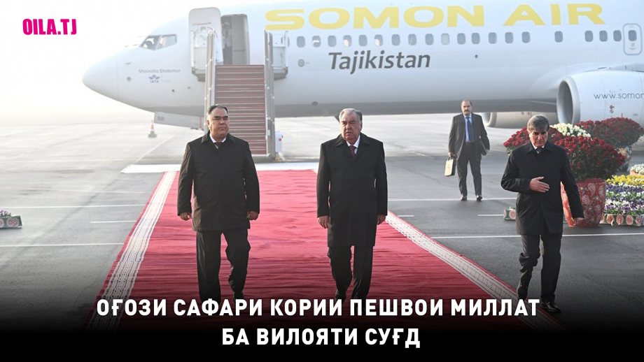 Бино ба иттилои дафтари матбуоти Президенти кишвар, дар Фурудгоҳи байналмилалии Хуҷанд Сарвари давлатро раиси вилояти Суғд Раҷаб Аҳмадзода ва дигар шахсони расмӣ самимона истиқбол гирифтанд.