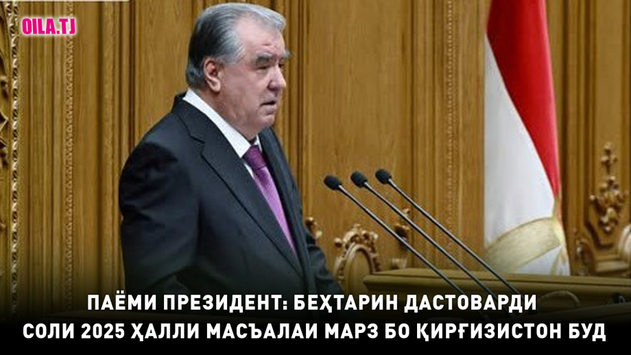 Асосгузори сулҳу ваҳдати миллӣ - Пешвои миллат, Президенти Ҷумҳурии Тоҷикистон муҳтарам Эмомалӣ Раҳмон имрӯз зимни ироаи Паёми худ ба Маҷлиси Олии Тоҷикистон дар боби дастовардҳои мамлакат дар тӯли соли 2025 сухан ронда, ҳалли масъалаи марзи Тоҷикистон ва Қирғизистонро беҳтарин дастоварди сол номиданд.