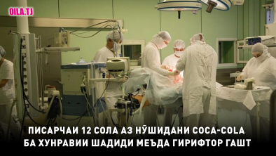 Як писарбачаи 12 сола бар асари муддати тӯлонӣ нӯшидани Coca-Cola ба хунравии шадиди меъда гирифтор гаштааст.