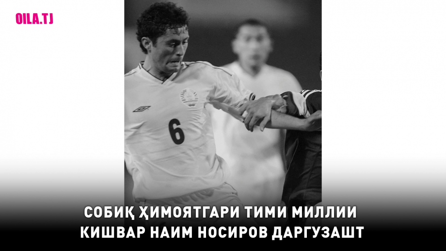 Наим Носиров, футболбози пешини тими миллии Тоҷикистон рӯзи 4-уми декабр дар 43-солагӣ вафот кардааст. Сабаби марги марҳум маълум нест.