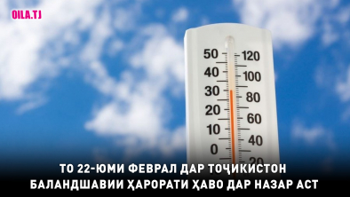 Агентии обуҳавошиносии Кумитаи ҳифзи муҳити зисти назди Ҳукумати Ҷумҳурии Тоҷикистон пешгӯӣ мекунад, ки то 22-юми феврал дар кишвар баландшавии ҳарорати ҳаво дар назар аст.