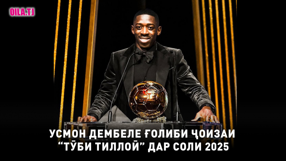 Усмон Дембеле - футболбози дастаи “ПСЖ” ва тими милии “Фаронса” аввалин ҷоизаи боарзиштарини худ - “Тӯби тиллоӣ”-ро шаби гузашта ба даст овард.