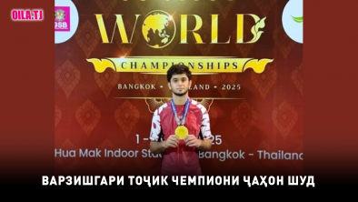 Дар Чемпионати ҷаҳон оид ба варзиши ҷиу-ҷитсу байни наврасон, ки дар шаҳри Бангкоки Тайланд баргузор гашт, варзишгари тоҷик Шаҳром Маҳмуродов ғолиб омада, соҳиби медали тило гашт.