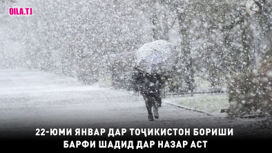 Агентии обуҳавошиносии кишвар сокинонро огоҳ кардааст, ки рӯзи 22-юми январ дар шаҳри Душанбе, атрофи он ва аксари ноҳияҳои ҷумҳурӣ бориши барфи шадид дар назар аст.