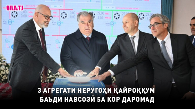 Субҳи имрӯз, 20-уми ноябр дар шаҳри Гулистони вилояти Суғд бо иштироки Пешвои миллат, Президенти Ҷумҳурии Тоҷикистон муҳтарам Эмомалӣ Раҳмон маросими расмии баъдинавсозӣ ба кор андохтани 3 агрегати нерӯгоҳи барқӣ-обии Қайроққум баргузор гашт.