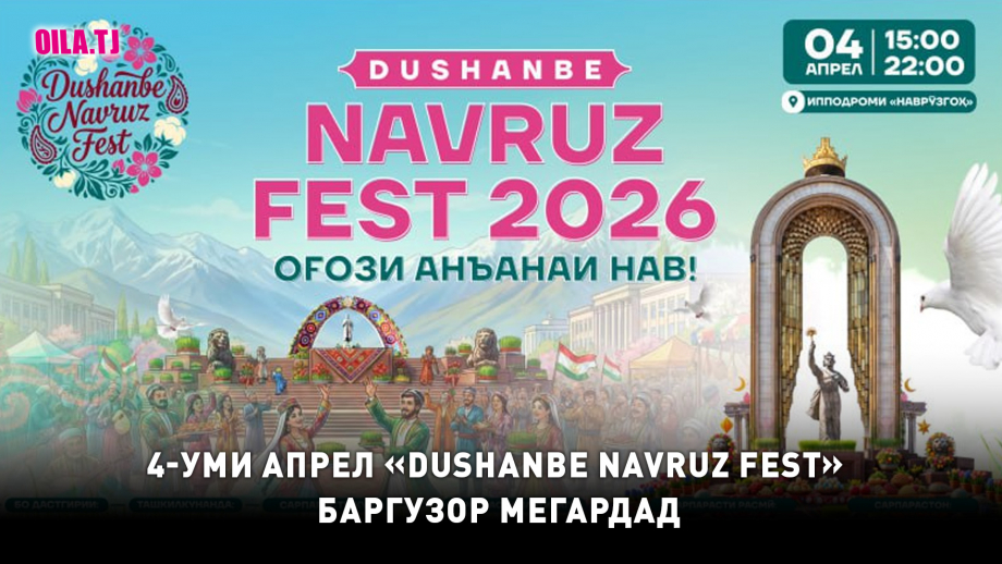 4-уми апрели соли 2026 дар асоси қарори дахлдори Раиси шаҳри Душанбе дар Муассисаи давлатии «Наврӯзгоҳ»-и шаҳри Душанбе чорабинии фарҳангӣ-фароғатии «Dushanbe Navruz Fest» баргузор мешавад.