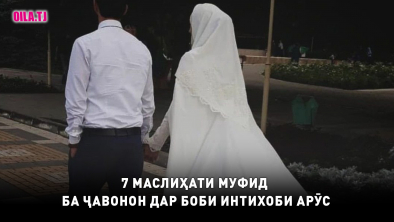 Ҳар як ҷавонмард мехоҳад бо духтари покдомон ва ҳунарманде оила барпо намояд, ки як умр ҳамсафари вафодори ҳаёташ гардад ва дар тамоми пастию баландиҳои зиндагӣ ӯро ҳамдаму ҳамроз ва ғамхору меҳрубон бошад. Ба хотири кумак ба ҷавонон дар интихоби дурусти арӯс мо чанд маслиҳати муфиди психологиро манзур месозем.