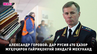 Александр Горовой, муовини аввали вазири умури дохилии Русия бо нигаронӣ изҳор доштааст, ки дар қаламрави Русия беш аз 670 ҳазор одамон ба таври ғайриқонунӣ кору зиндагӣ карда истодаанд. Дар ин бора расонаҳои русӣ хабар додаанд.