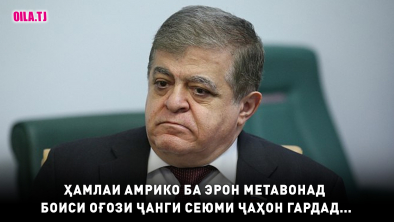 Владимир Ҷабборов, раиси Шурои Федератсияи Россия оид ба ҳифзи истиқлолияти давлатӣ аз ҳамлаҳои Амрико ба Эрон изҳори нигаронӣ намуда, гуфтааст, ки ин моҷарои низомӣ метавонад боиси оғоз ёфтани ҷанги сеюми ҷаҳон гардад.