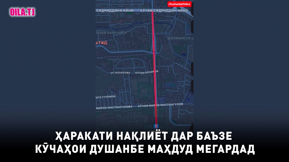 Раёсати Вазорати корҳои дохилӣ дар шаҳри Душанбе ба иттилои шаҳрвандон ва ронандагони воситаҳои нақлиёт мерасонад, ки аз роҳҳои мошингарди кӯчаҳои ҳамшафат истифода намоянд.