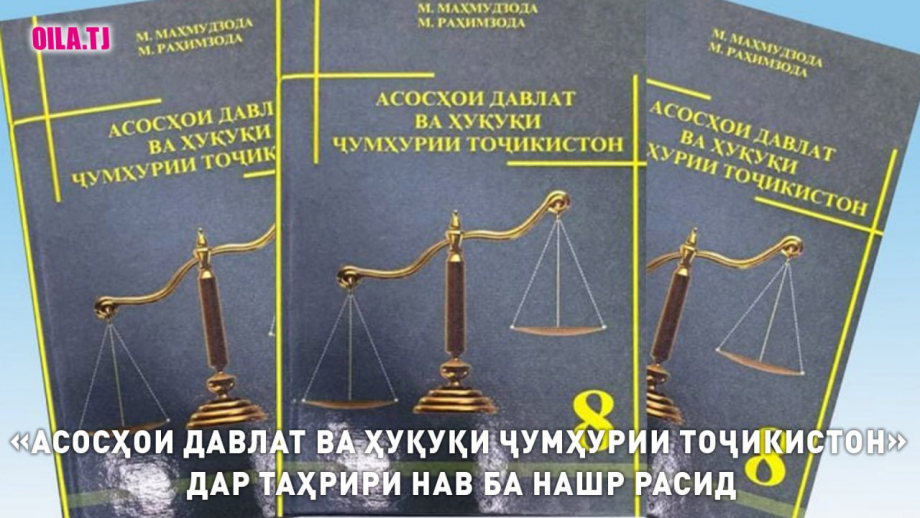 Нашри панҷуми китоби дарсии «Асосҳои давлат ва ҳуқуқи Ҷумҳурии Тоҷикистон» барои синфи 8-уми муассисаҳои таҳсилоти миёнаи умумӣ бо забони тоҷикӣ дар таҳрири нав бо теъдоди 60 ҳазор нусха аз чоп баромад.