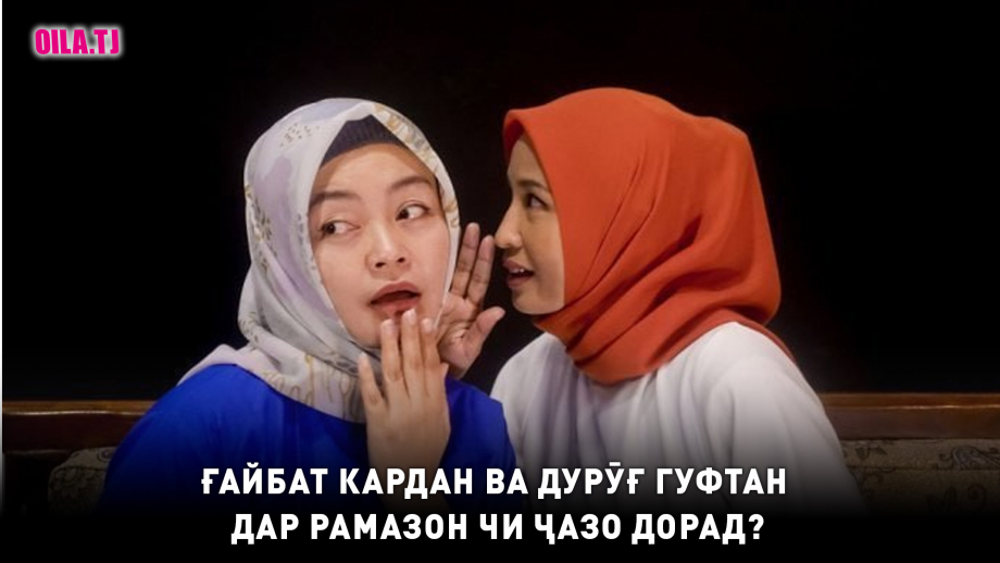 Боре Расули акрам (с) шуниданд, ки ду зани рӯзадор нишаста мардумро ғайбат мекунанд. Он гоҳ Расули Худо (с) чунин фармуданд: “Ин ду зан нисбати он чизе, ки Худованд бар онҳо ҳалол кардааст, рӯза ҳастанд ва ба чизҳое, ки Худо бар онҳо ҳаром намудааст, ифтор кардаанд”. (Яъне хӯрдану нӯшиданро, ки ҳалол аст, бар худ манъ кардаанд, вале ғайбату суханчиниро, ки ҳаром аст, барои худ озоду мубоҳ кардаанд).