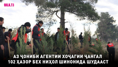 Агентии хоҷагии ҷангали назди Ҳукумати Ҷумҳурии Тоҷикистон дар доираи «Барномаи давлатӣ оид ба кабудизоркунии Ҷумҳурии Тоҷикистон барои давраи то соли 2040» дар мамлакат 102 ҳазор бех ниҳоли дарахтони ороишию сояафкан ва мевадиҳанда шинонидааст.