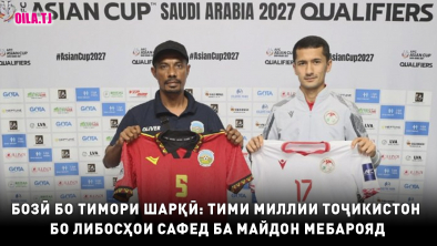 Дастаи миллии Тоҷикистон дар бозии даври панҷуми марҳилаи интихобии Ҷоми Осиё-2027 дар гурӯҳи «А» муқобили яккачини Тимори Шарқӣ бо либосҳои анъанавии сафед ҳунарнамоӣ менамояд.
