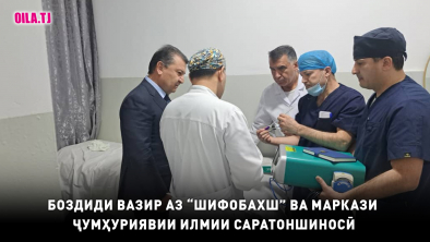 Вазири тандурустӣ ва ҳифзи иҷтимоии аҳолии Ҷумҳурии Тоҷикистон Ҷамолиддин Абдуллозода ба Муассисаи давлатии “Маркази миллии тиббии Тоҷикистон “Шифобахш” ва Муассисаи давлатии «Маркази ҷумҳуриявии илмии саратоншиносӣ» ташриф оварда, аз фаъолияти хизматрасонии тиббӣ ва раванди корҳои ободониву созандагии муассисаҳои мазкур дидан намудааст.