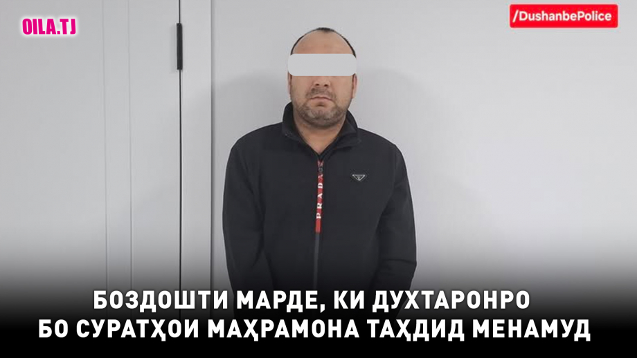 Кормандони милитсия сокини 35-солаи шаҳри Душанбе Абдулло Азамзодаро бо иттиҳоми шантаж бо истифода аз аксҳои маҳрамона боздошт намудаанд.