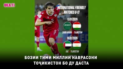Дастаи мунтахаби наврасони то 17-солаи Тоҷикистон дар доираи омодагӣ ба Ҷоми Осиё-2026 бо тимҳои миллии то 17-солаи Арабистони Саудӣ (13-уми январ) ва Амороти Муттаҳидаи Араб (16-уми январ) бозии дӯстона доир мекунад. Ҳардуи ин рақобатҳо дар шаҳри Дубай баргузор мешаванд.