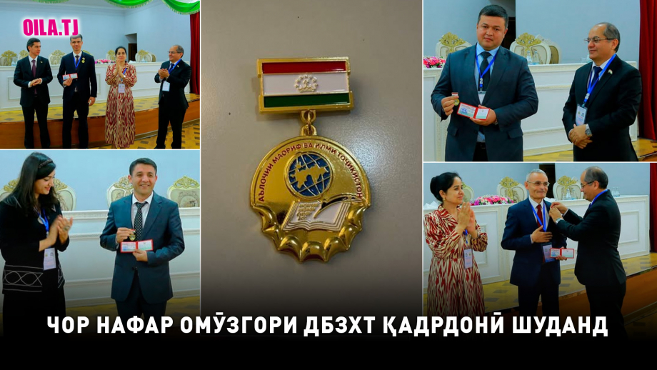 Бино ба иттилои донишгоҳи мазкур, муовини ректор оид ба таълим Гадозода Маҳмадшариф, мудири кафедраи омӯзгории забонҳои Шарқ Нуриддин Султонҳайдаров, мудири кафедраи филологияи Шарқи Наздик Наҷмиддин Солиҳов ва омӯзгори кафедраи фалсафа ва сиёсатшиносӣ Муҳаммадсалим Азизмуродов барои хизматҳои бисёрсола дар соҳаи маориф, саҳми арзанда дар таълиму тарбияи насли наврас, тайёр намудани кадрҳои болаёқат ва иштироки фаъолона дар ҳаёти ҷамъиятӣ бо нишони “Аълочии маориф ва илми Тоҷикистон” қадрдонӣ карда шуданд.