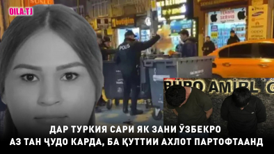 Дар минтақаи Шишлии шаҳри Истанбули Туркия тани бесари занеро аз қуттии ахлотпарто ёфтаанд. Маълум шудааст, ки зани кушташуда шаҳрванди Узбекистон Дурдона Ҳакимоваи 37-сола буда, бо сабабҳои номаълум дар Туркия сарашро аз тан ҷудо кардаанд.