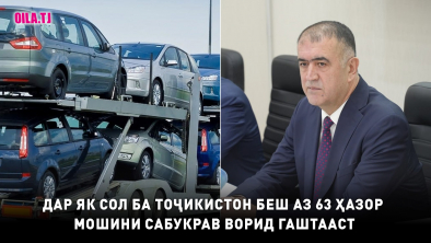 Дар давоми як соли охир ба Тоҷикистон 63 ҳазору 961 мошини сабукрав ба маблағи 684,9 млн доллари ИМА ворид гаштааст, ки нисбат ба соли 2024 ин адад 16 ҳазору 667 адад зиёд мебошад.