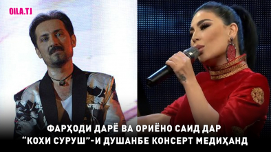 Ду сарояндаи шинохтаи Афғонистон - Фарҳоди Дарё ва Ориёно Саид ба Тоҷикистон омаданд. Шоми имрӯз ин ду ситораи тобноки Шарқ ҳамроҳи ҳунармандони тоҷик як барномаи рангини консертӣ барпо хоҳанд кард.