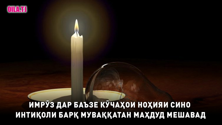 Шабакаҳои барқи шаҳри Душанбе хабар медиҳад, ки имрӯз дар баъзе кӯчаҳои ноҳияи Сино то соати 17:00 интиқоли қувваи барқ муваққатан маҳдуд карда мешавад.