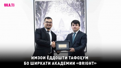 17-уми декабри соли равон дар шаҳри Пномпени Шоҳигарии Камбоҷа Ёддошти тафоҳум байни Маркази ҷумҳуриявии дарёфт ва рушди истеъдодҳои Вазорати маориф ва илми Ҷумҳурии Тоҷикистон ва ширкати академии «Bright» ба имзо расид.